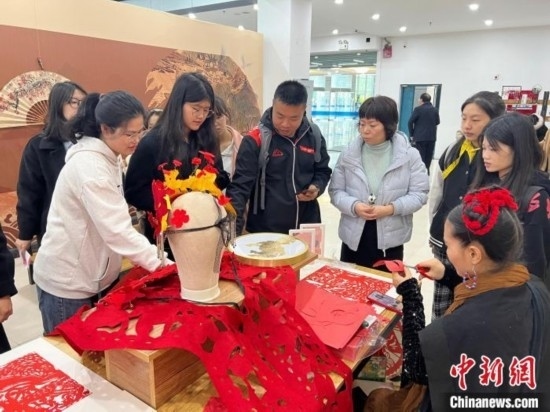 圖為學(xué)生們學(xué)習(xí)剪紙。中新網(wǎng)記者 周毅 攝