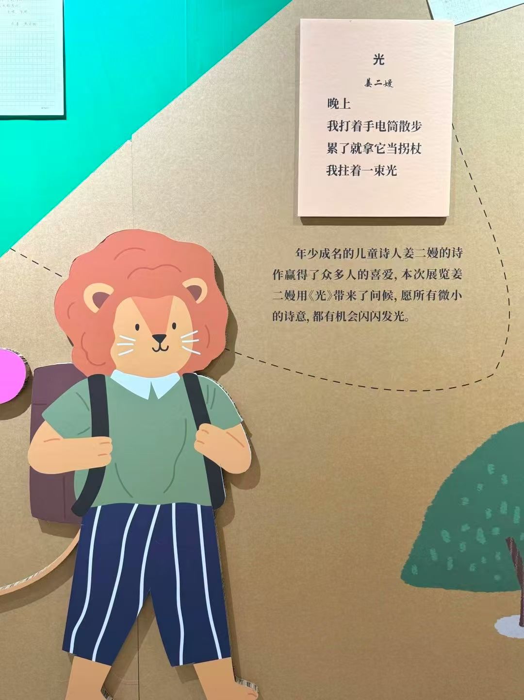 本次展覽匯集全國各地少年兒童創(chuàng)作的百余首詩歌,其中包括經嚴格評審產生的35篇優(yōu)秀作品。展覽分為“家在水草豐茂的地方”“為萬物輕聲命名”“原來這就是長大呀”“未來花正開”四個單元,從描繪勒勒車轍蜿蜒的稚趣短句,到追問星星為何眨眼的天真遐想,再到幻想成為箭矢破浪飛馳的斑斕夢境,童心與詩意在展覽中浪漫相遇,開啟了一場屬于孩子們的詩歌盛會。