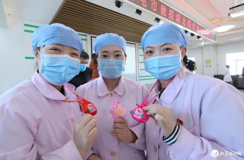 根據(jù)疫情防治需要,呼倫貝爾扎蘭屯市中蒙醫(yī)院醫(yī)療隊(duì)的10名護(hù)士馳援湖北。2月17日,護(hù)士們?cè)诔霭l(fā)前互相加油鼓勁,帶著責(zé)任,帶著祝愿,向湖北出發(fā)。(通訊員:韓冷)