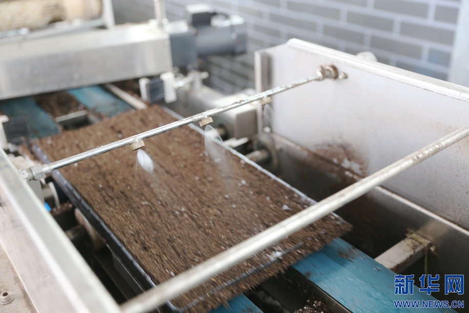 自動播種機通過流水線方式完成播種、澆水流程。新華網(wǎng)曹楨攝