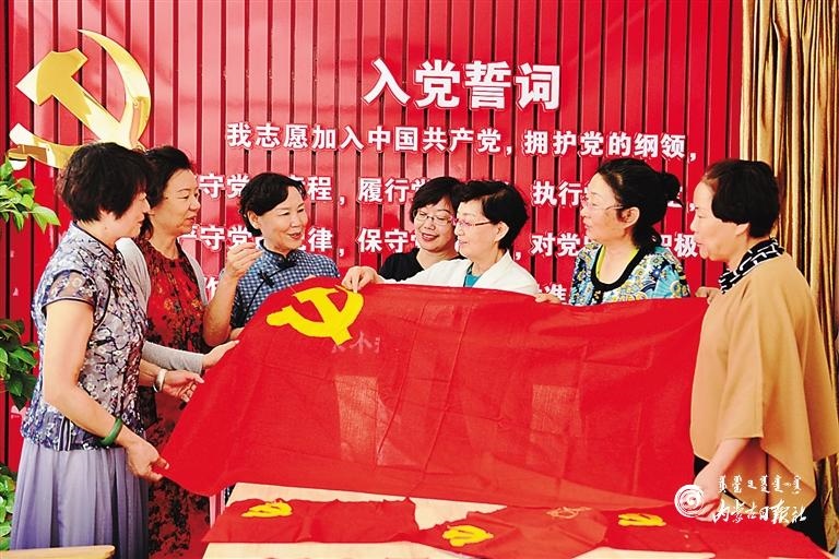 6月30日,呼和浩特市玉泉區(qū)五塔北街社區(qū)老黨員們正在一針一線繡黨旗。當(dāng)日,該社區(qū)舉行了“繡黨旗 迎七一”獻(xiàn)禮活動,老黨員、新黨員和志愿者一起繡黨旗、頌黨恩,抒發(fā)對黨的熱愛之情。(內(nèi)蒙古日報(bào)記者 安寅東 攝)