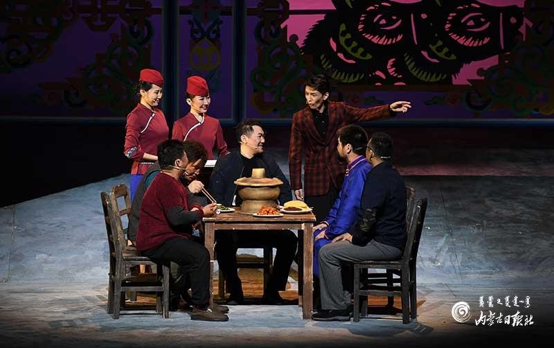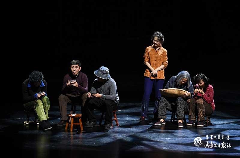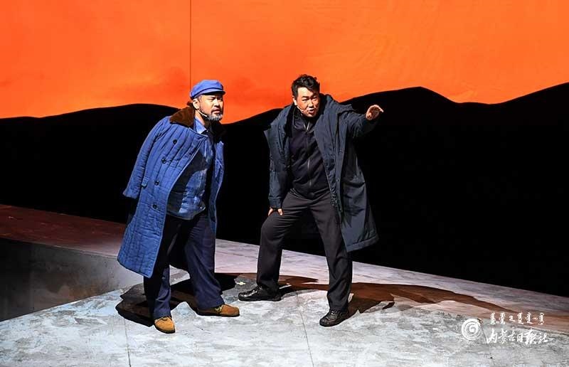 參演《紅手印》的都是來自草原的蒙古族演員,不僅要完成漢語的臺詞,還要熟練自然地講出大量內(nèi)蒙古西部方言對白?!皩τ谠拕⊙輪T來說,臺詞功底太重要了。為了練好方言,我們好多演員早起練功的時候嘴里都念念有詞地說著西部方言?!毖輪T烏仁朝魯門說。他扮演的新扎木村主任令人印象深刻,一個一心想帶百姓致富卻屢遭失敗的老黨員形象?!爸氨硌輾v史題材的話劇大多是從影像和資料了解人物,這部戲的題材貼近觀眾們的現(xiàn)實生活,必須接地氣才能得到認(rèn)可。我通過寫人物小傳的方式,深挖村主任的人物個性和從失望到燃起希望的內(nèi)心世界,讓觀眾能夠認(rèn)可這個形象?!睘跞食旈T說。