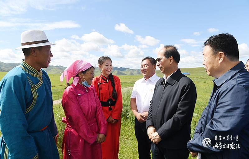 8月11日,自治區(qū)黨委書記、人大常委會主任石泰峰來到興安盟科右前旗烏蘭毛都蘇木,了解草原生態(tài)保護(hù)和牧業(yè)發(fā)展情況。內(nèi)蒙古日報記者 袁永紅 攝