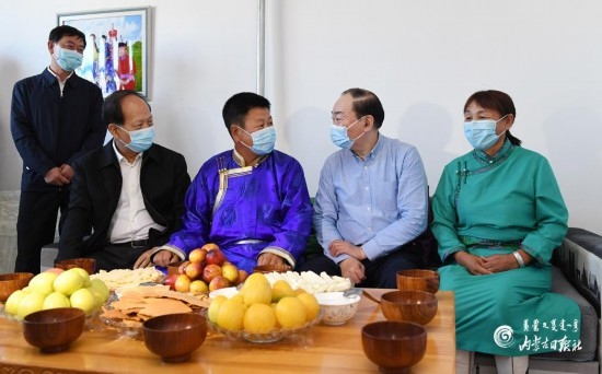 8月29日,中共中央政治局委員、中宣部部長(zhǎng)黃坤明在內(nèi)蒙古自治區(qū)黨委書記、人大常委會(huì)主任石泰峰陪同下,深入興安盟科右中旗巴彥茫哈蘇木哈圖布其嘎查,走進(jìn)牧戶家中了解生產(chǎn)生活和脫貧情況。內(nèi)蒙古日?qǐng)?bào)記者袁永紅攝