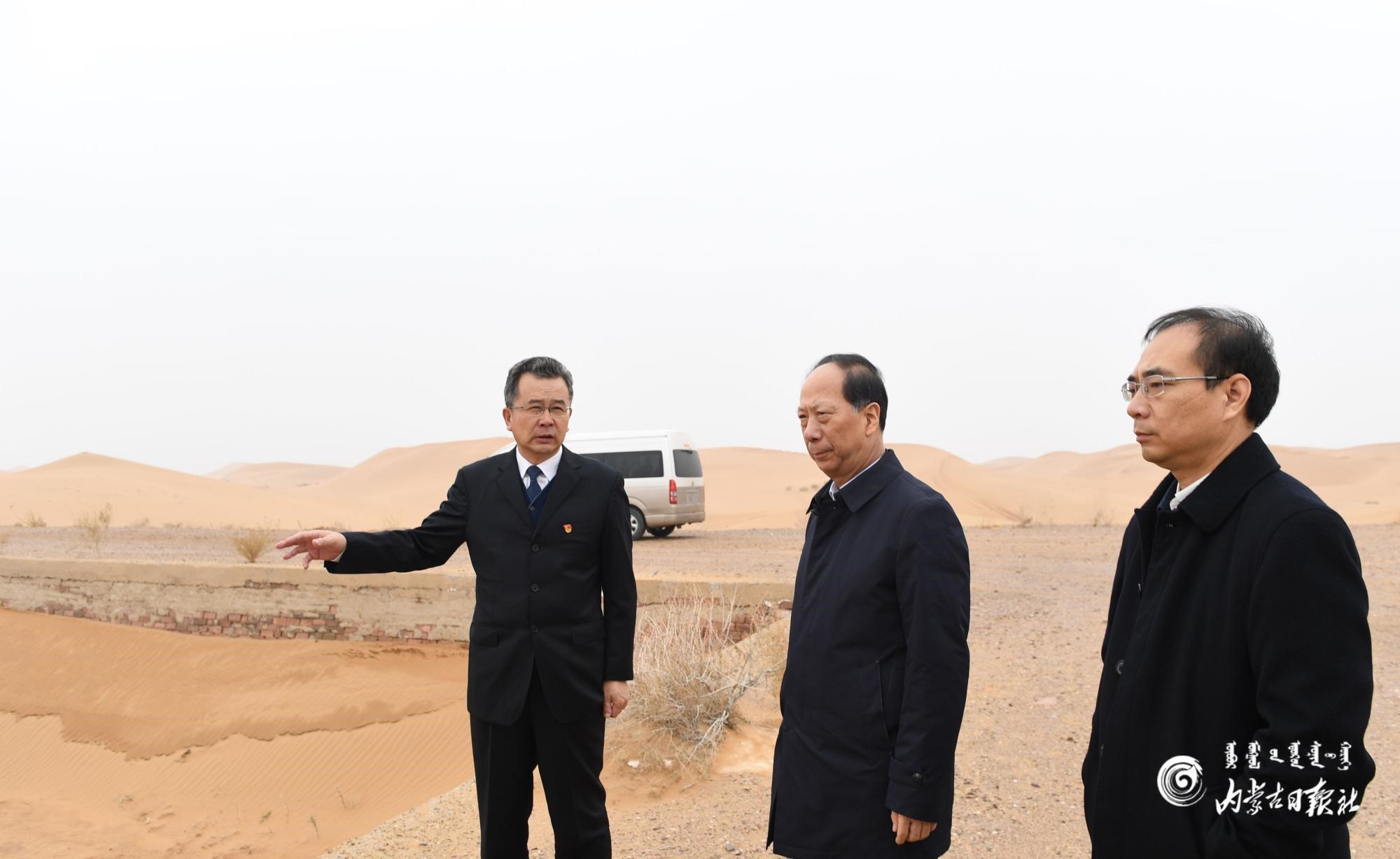 11月24日,自治區(qū)黨委書記、人大常委會主任石泰峰來到阿拉善左旗實地察看晾曬池廢水底泥處置情況。內(nèi)蒙古日報記者 袁永紅攝