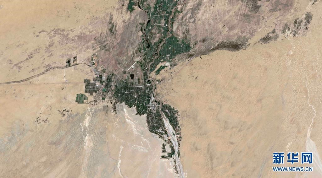 這是新疆且末縣河東治沙站的衛(wèi)星圖片。新華社發(fā)(新華社衛(wèi)星新聞實驗室、瞭望數據媒體實驗室聯合供圖)