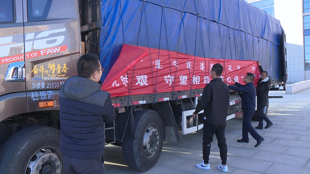 21日下午,額濟(jì)納旗東南1000公里外的鄂爾多斯市康巴什區(qū),2輛滿載消毒液、防護(hù)服、N95口罩、酒精等防疫物資,以及大米、白面、豬肉等糧食物資的大卡車,緊急馳向額濟(jì)納。