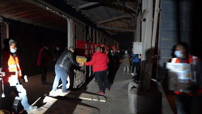 21日中午,額濟(jì)納旗東600多公里外的巴彥淖爾市,派出由50名醫(yī)務(wù)人員組成的醫(yī)療隊(duì)趕赴額濟(jì)納旗之后,當(dāng)晚又啟動(dòng)援助物資調(diào)運(yùn)工作,星夜馳援額濟(jì)納旗。22日凌晨,緊急調(diào)配的一批醫(yī)用防護(hù)服、口罩、多功能防護(hù)面罩等醫(yī)療物資,以及蔬菜、羊肉、牛奶、方便面等防疫物資緊急裝車,由專列送往阿拉善盟。