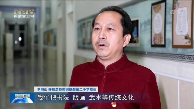 李明山 呼和浩特市鋼鐵路第二小學校長:我們把書法、版畫、武術等傳統(tǒng)文化融入到孩子們的課堂中,就是為了,讓他們從傳統(tǒng)文化中,感受我們民族的根,民族的魂,