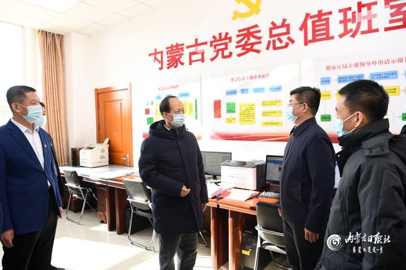 1月31日,自治區(qū)黨委書記、人大常委會(huì)主任石泰峰,來到自治區(qū)黨委總值班室檢查指導(dǎo)全區(qū)政務(wù)值班情況。內(nèi)蒙古日?qǐng)?bào)社融媒體記者袁永紅攝