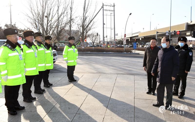 1月31日,自治區(qū)黨委書記、人大常委會(huì)主任石泰峰,走訪呼和浩特市公安局交警支隊(duì)賽罕大隊(duì)九中隊(duì)崗?fù)?,看望慰問一線執(zhí)勤交警。內(nèi)蒙古日?qǐng)?bào)社融媒體記者袁永紅攝