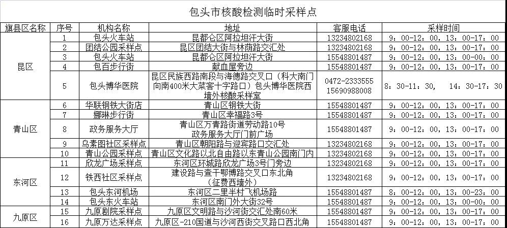 相關(guān)公示:包頭市24小時核酸采樣檢測機構(gòu)和臨時采樣點公示