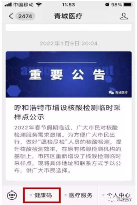 最近有呼和浩特市民反映不能及時在“青城醫(yī)療”健康碼上查詢到核酸檢測結(jié)果,建議大家執(zhí)行如下操作: