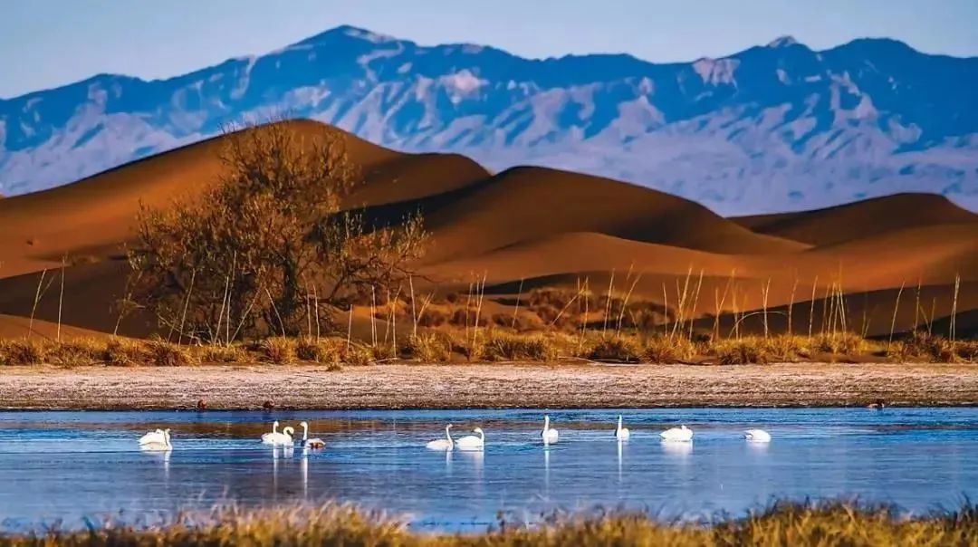 巴丹吉林沙漠年降水量不足40毫米,但是沙漠中的湖泊竟然多達(dá)100多個(gè)。高聳入云的沙山,神秘莫測(cè)的鳴沙,靜謐的湖泊、濕地,構(gòu)成了巴丹吉林沙漠獨(dú)特的迷人景觀,于2005年被《中國(guó)國(guó)家地理》雜志評(píng)為中國(guó)最美麗的沙漠,每年吸引了上萬名國(guó)內(nèi)外游客前來觀光。