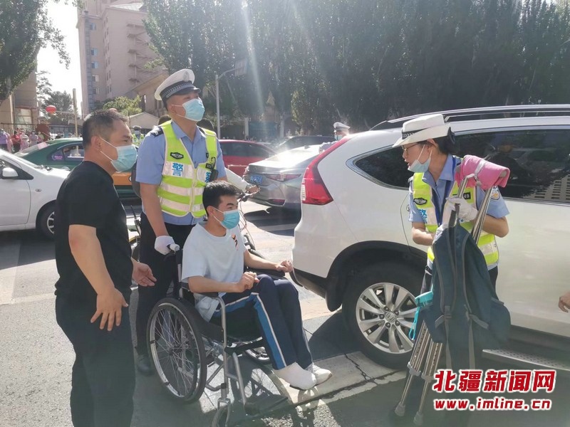 現(xiàn)場(chǎng)最讓感動(dòng)的是,一位腳扭傷的考生,在兩名交警的幫助下坐上輪椅進(jìn)入考場(chǎng)?!坝辛怂麄兊膸椭瑴p少了我們的焦慮,心情輕松了很多,而且今天早早就來到了考場(chǎng)。”考生家長(zhǎng)介紹,昨天看考場(chǎng)時(shí),交警同志得知孩子的腳扭傷后,今天特意趕來護(hù)送學(xué)生進(jìn)入考場(chǎng)。