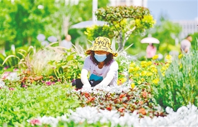 7月13日,工作人員在呼和浩特市草原絲綢之路文化公園維護(hù)、修整花境。據(jù)了解,呼和浩特市園林建設(shè)服務(wù)中心2022年在全市范圍內(nèi)打造19個(gè)花境,目前已全部建設(shè)完成。不同花境采取不同主題,景色錯(cuò)落有致,讓市民們走出家門(mén)就可欣賞唯美詩(shī)意的生態(tài)花境。(內(nèi)蒙古日?qǐng)?bào)社融媒體記者 王磊攝)