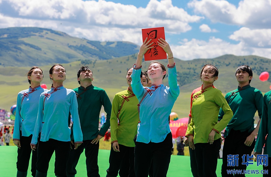 8月8日,烏蘭牧騎隊員們在開幕式上進(jìn)行文藝表演。新華網(wǎng)發(fā)(丁根厚攝)