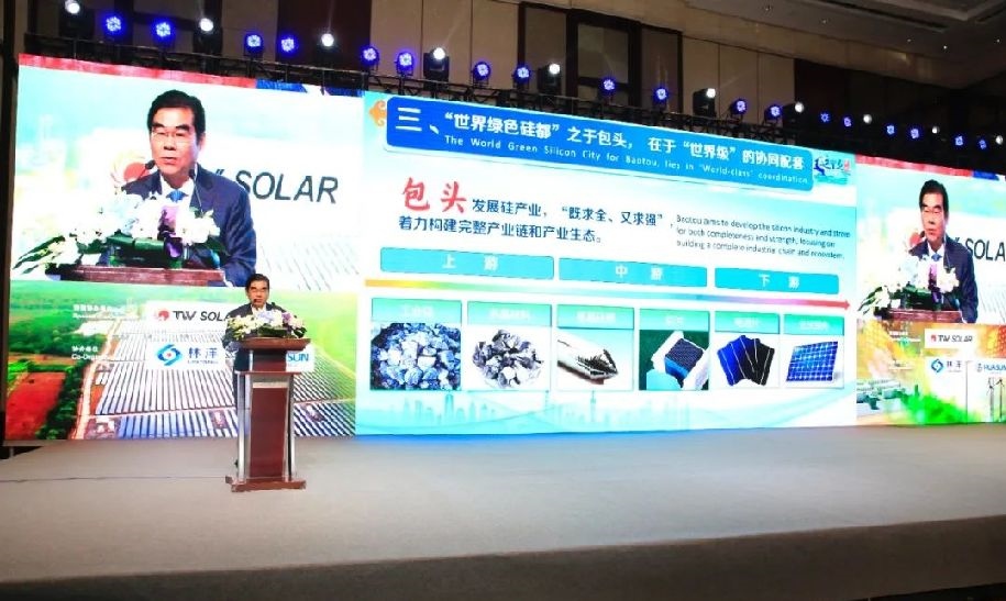 國際太陽能光伏與智慧能源大會是全球規(guī)模最大、最具影響力的專業(yè)化國際化光伏盛會,對于世界能源變革、全球生態(tài)環(huán)境改善具有重要引領(lǐng)作用。丁繡峰代表市委、市政府向大會的召開表示熱烈的祝賀,向所有關(guān)心支持包頭發(fā)展的企業(yè)家、專家學(xué)者和各界人士表示衷心的感謝。他說,全球綠色能源理事會為包頭市頒授“世界綠色硅都”稱號,我們深感榮幸、倍感振奮?!笆澜缇G色硅都”之于包頭,在于“世界級”的產(chǎn)業(yè)規(guī)模,2022年包頭成為全國首個(gè)光伏產(chǎn)業(yè)產(chǎn)值超千億元的城市,預(yù)計(jì)今年底多晶硅、單晶硅產(chǎn)能將分別占到全國的40%,2025年將分別占到全國的半壁江山、占到全球的45%,我們將繼續(xù)擴(kuò)大光伏硅優(yōu)勢,建設(shè)全球最大的晶硅材料生產(chǎn)基地,打造萬億級光伏產(chǎn)業(yè)集群,建設(shè)千億級半導(dǎo)體產(chǎn)業(yè)集群和有機(jī)硅產(chǎn)業(yè)集群。“世界綠色硅都”之于包頭,在于“世界級”的綠電支撐,包頭風(fēng)光資源豐富,可為硅產(chǎn)業(yè)發(fā)展提供“綠色電、便宜電、可靠電”,到2025年全市光伏產(chǎn)業(yè)使用“綠電”比例將達(dá)到40%以上,為企業(yè)通過“碳足跡”認(rèn)證、進(jìn)軍歐盟等國際光伏市場拿到綠色通行證?!笆澜缇G色硅都”之于包頭,在于“世界級”的協(xié)同配套,包頭發(fā)展硅產(chǎn)業(yè)從一開始就本著“既求全、又求強(qiáng)”的原則,目前已形成從工業(yè)硅到多晶硅、單晶硅,再到切片、電池片、組件的完整光伏產(chǎn)業(yè)鏈,我們將繼續(xù)抓好產(chǎn)業(yè)成龍配套,保證光伏產(chǎn)業(yè)鏈各環(huán)節(jié)都有頭部企業(yè)集聚,使包頭成為全國乃至全球光伏產(chǎn)業(yè)鏈最完整、配套率最高的城市?!笆澜缇G色硅都”之于包頭,在于“世界級”的技術(shù)研發(fā),云集包頭的硅產(chǎn)業(yè)頭部企業(yè)都擁有著引領(lǐng)行業(yè)前沿的技術(shù)優(yōu)勢,是包頭硅產(chǎn)業(yè)屹立全球行業(yè)前沿的硬支撐,我們將加速創(chuàng)新鏈與產(chǎn)業(yè)鏈融合發(fā)展,使包頭成為具有全球影響力的硅產(chǎn)業(yè)先進(jìn)技術(shù)研發(fā)中心、認(rèn)證中心、檢測中心、推廣中心。