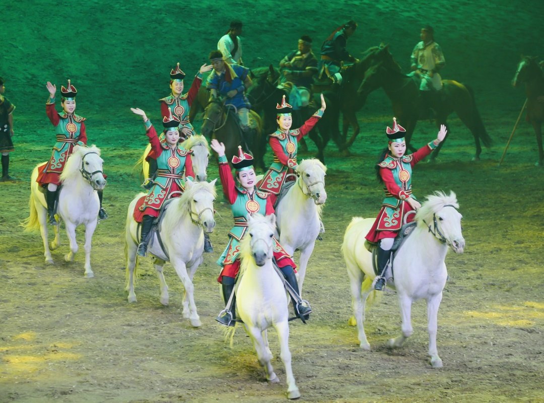 《千古馬頌》既具奪人眼球的觀賞性,又有直指人心的文化內(nèi)涵;既是一項填補內(nèi)蒙古馬文化駐場演出空白的旅游產(chǎn)品,又是一部挖掘蒙古民族與馬深厚情感的藝術(shù)史詩,成為近年來提升內(nèi)蒙古自治區(qū)文化產(chǎn)業(yè)核心競爭力、展現(xiàn)民族融合團(tuán)結(jié)奮斗的一部優(yōu)秀作品。(攝影/內(nèi)蒙古日報·草原全媒記者郭偉偉)