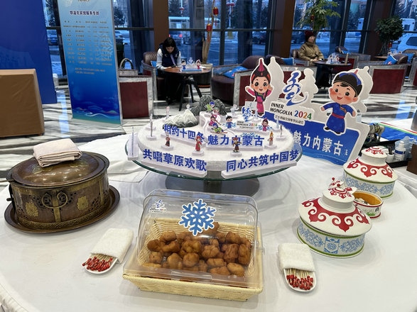 當?shù)竭_負責接待“十四冬”媒體記者和技術官員的呼倫貝爾市鄂溫克賓館時,剛進賓館大廳,身著蒙古袍的工作人員手捧哈達迎接著遠方的朋友,并為每位來賓獻上哈達表示誠摯的祝福。一旁還有熱騰騰的奶茶和美味的果條供大家享用。