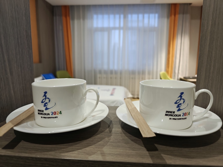 當記者走進酒店房間時,“十四冬”的吉祥物抱枕擺在床頭,床上用毛巾和花朵擺的雪花造型以及“呼倫貝爾歡迎您”的暖心話語,瞬間趕走一路疲憊。