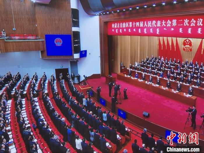 圖為內(nèi)蒙古自治區(qū)十四屆人大二次會(huì)議現(xiàn)場(chǎng)?! ±?lèi)?ài)平 攝