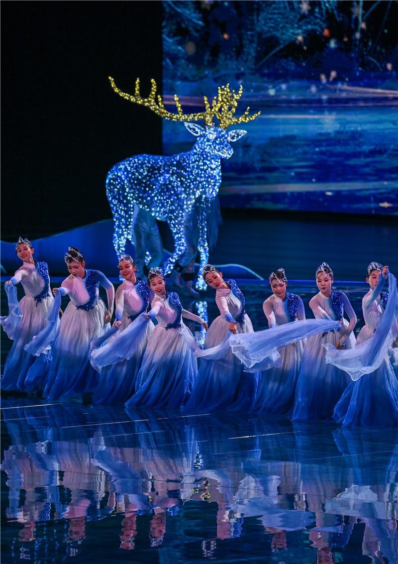 其中文體展演包括序篇《共同的家園》、主篇章《山河共錦繡》《冰雪共相約》《攜手共奮進(jìn)》和尾聲《共同的未來》,展演將中國風(fēng)范、民族特色、北疆韻味、運(yùn)動活力通過科技手段創(chuàng)意呈現(xiàn),在傳承與創(chuàng)新的碰撞下,展現(xiàn)了草原文化、冰雪文化和民族文化的多彩魅力。