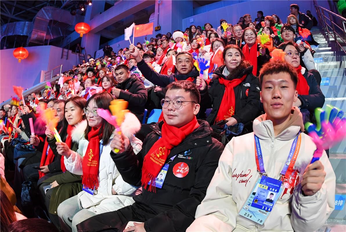 中華人民共和國冬季運(yùn)動會會旗入場。
