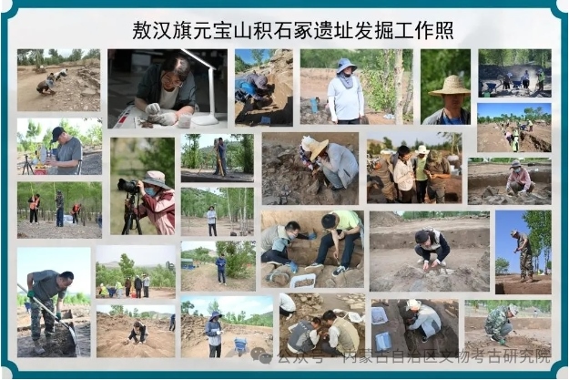 2023年11月,位于赤峰市敖漢旗下洼鎮(zhèn)元寶山積石冢被盜,當(dāng)?shù)匚奈锕芾聿块T上報后,2024年初內(nèi)蒙古自治區(qū)文物考古研究院經(jīng)自治區(qū)文物局批準(zhǔn),以搶救性考古發(fā)掘向國家文物局申請并得以批準(zhǔn)。4月底,組隊對該地點及周邊開展調(diào)查并進(jìn)行了勘探。5月正式啟動發(fā)掘,截止目前已明確該地點為一處集墓葬建筑與祭祀建筑一體的紅山文化遺存。也是目前所知內(nèi)蒙古自治區(qū)唯一的一處南方北圓、南壇北冢的紅山文化晚期建筑遺存。