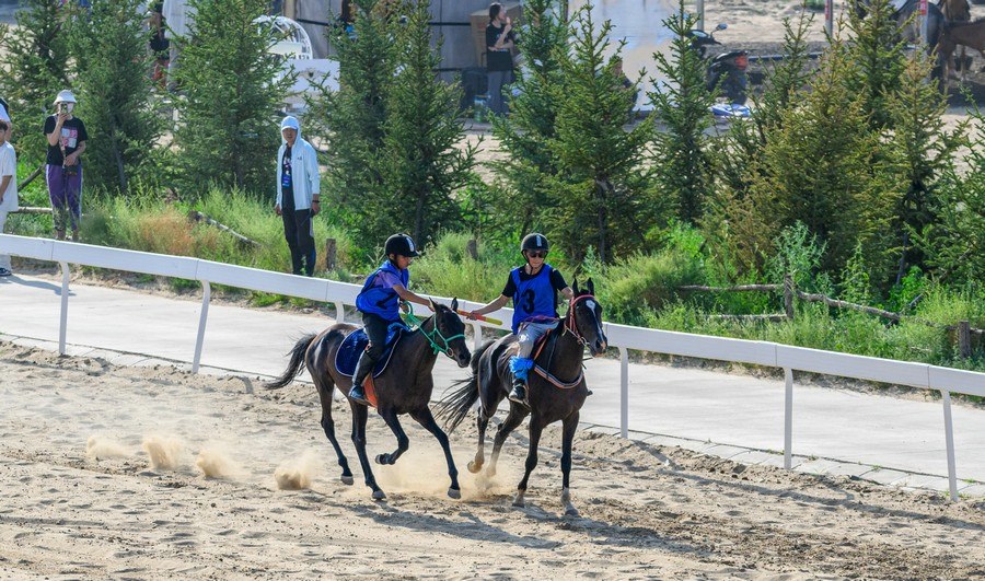 7月13日下午,內(nèi)蒙古錫林浩特馬都核心區(qū)賽馬場(chǎng),錫林浩特蒙古馬積分賽1000米速度賽和15公里接力賽正在這里輪番進(jìn)行,比賽現(xiàn)場(chǎng),選手們策馬奔騰,激戰(zhàn)正酣。