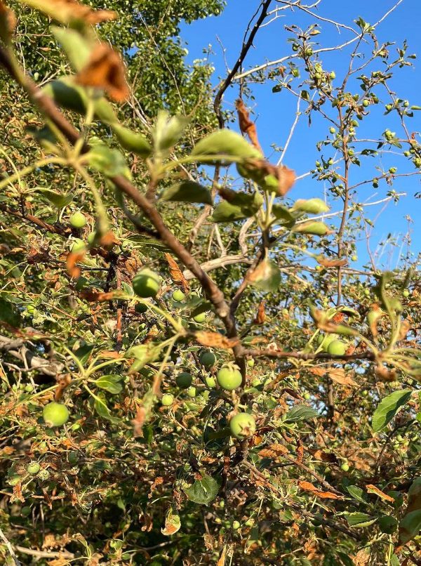 ??馮耀華當(dāng)年帶頭修起的大壩已廢棄,壩下無(wú)人料理的果樹(shù)卻還年年結(jié)果。今年又有不少綠色小沙果掛在枝頭。新華每日電訊記者王京雪攝