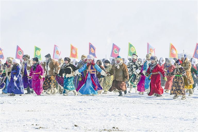 在呼倫貝爾市舉行的冰雪那達(dá)慕吸引市民游客一起感受大雪原的魅力。