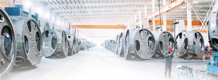 3月7日,走進(jìn)科爾沁工業(yè)園區(qū),在蒙東(通遼)風(fēng)電裝備制造產(chǎn)業(yè)基地內(nèi)蒙古龍馬鑄造有限公司精工車間里,各條生產(chǎn)線有序運(yùn)轉(zhuǎn),工人們正在進(jìn)行風(fēng)電輪轂加工、底座側(cè)鏜加工等作業(yè)?!敖衲甏汗?jié),我們只休息了兩天,從初二起,全生產(chǎn)線便滿負(fù)荷運(yùn)轉(zhuǎn),全力追趕訂單進(jìn)度。”內(nèi)蒙古龍馬制造有限公司副總經(jīng)理時(shí)偉介紹道。