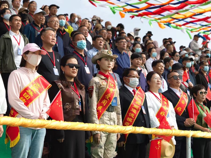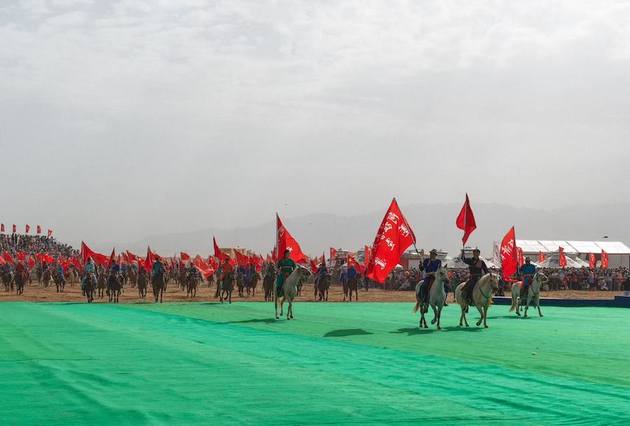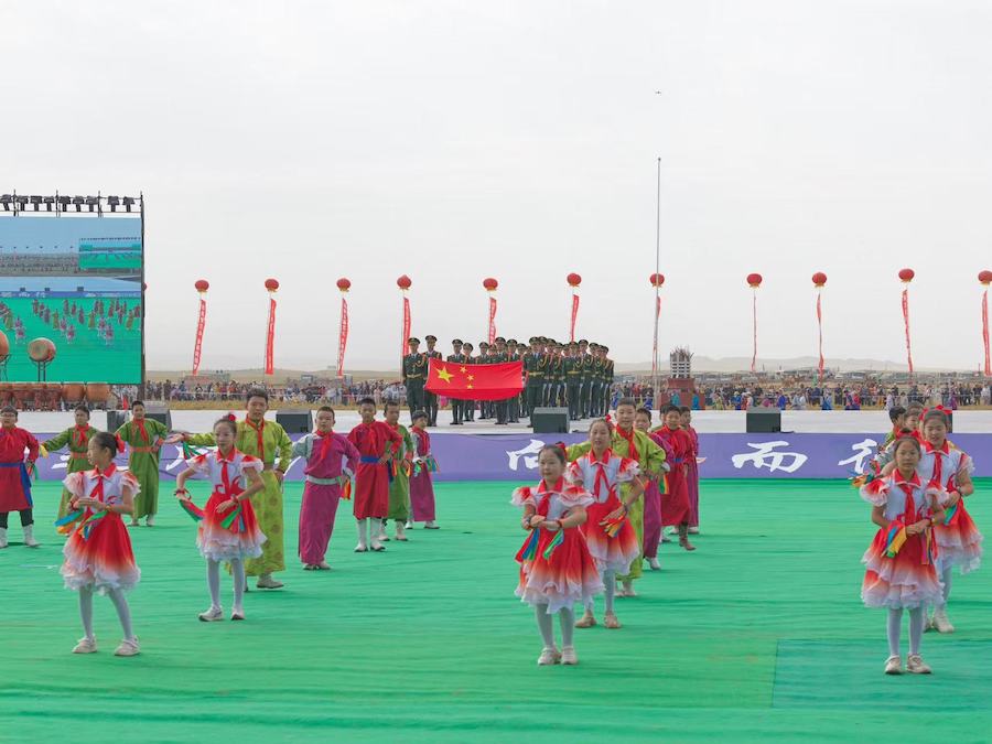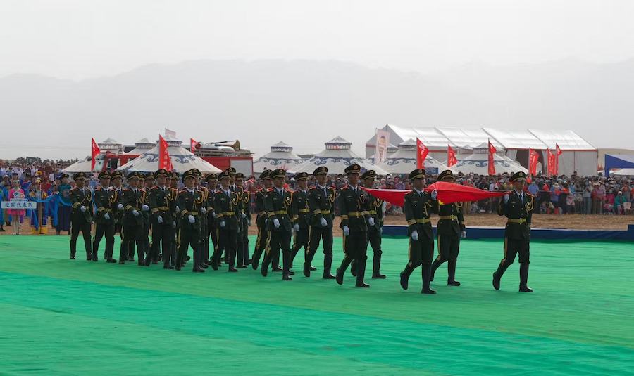 2025阿拉善那達(dá)慕開幕式上儀仗隊護(hù)送國旗走向場地