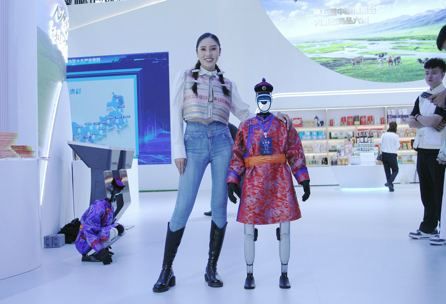 與網(wǎng)紅機(jī)器人合影 北疆新聞記者 張楊攝影