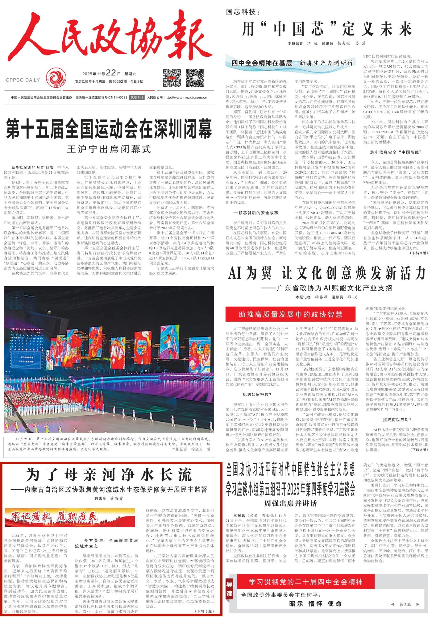 2025年11月22日《人民政協(xié)報》頭版刊發(fā)了《為了母親河凈水長流——內(nèi)蒙古自治區(qū)政協(xié)聚焦黃河流域水生態(tài)保護修復(fù)開展民主監(jiān)督》的文章,報道了內(nèi)蒙古自治區(qū)政協(xié)把視角對準了黃河流域內(nèi)蒙古段水生態(tài)保護修復(fù),開展民主監(jiān)督。