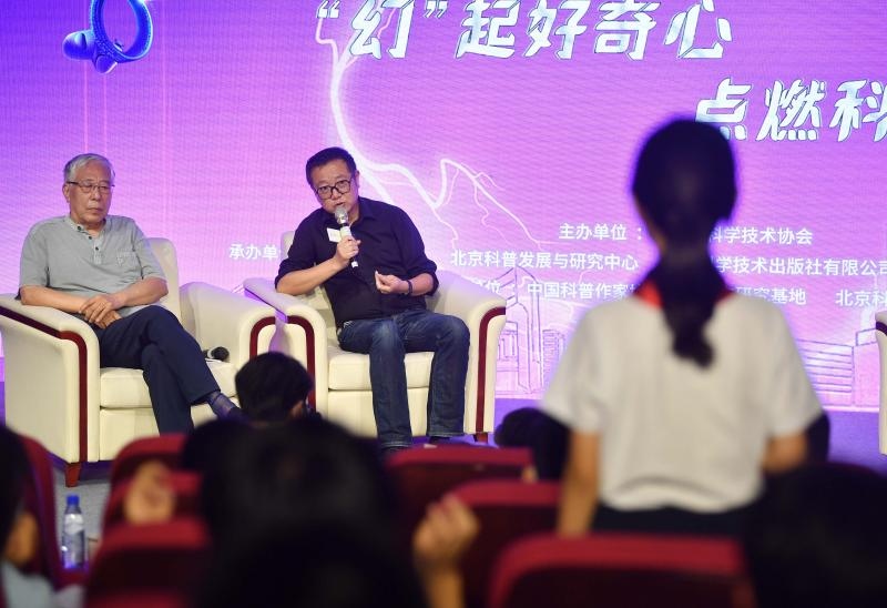 科幻有預(yù)言功能嗎?《流浪地球》中“冬眠”那樣的科幻技術(shù)會(huì)影響人類的發(fā)展方向嗎?優(yōu)秀科幻作品如何帶給讀者強(qiáng)烈的代入感?昨天,一場(chǎng)科幻大師與中學(xué)生之間的對(duì)話在中國科幻大會(huì)上演。作為中國科幻大會(huì)的重要組成部分,“首都青少年科幻嘉年華”在首鋼園和北京科學(xué)中心舉辦,其中的“大師對(duì)話”環(huán)節(jié)邀請(qǐng)著名科幻作家劉慈欣、王晉康,與第42屆北京青少年科技創(chuàng)新大賽科幻畫獲獎(jiǎng)?wù)呒鞍儆嗝袑W(xué)生進(jìn)行了科幻對(duì)話。