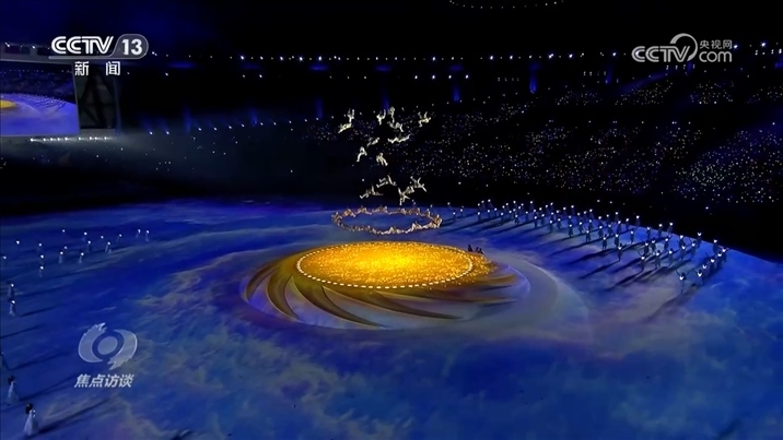 陳維亞:“我們把四川蜀錦概念融入到入場儀式里面,在視頻上繡娘們開始不斷繡著,運(yùn)動(dòng)員劃出彩色的線路,寓意著運(yùn)動(dòng)員們錦繡前程擺在他們面前。我們要表達(dá)的最主要的東西和以往都不一樣,就是青春、陽光、活力、夢想?!?/p>