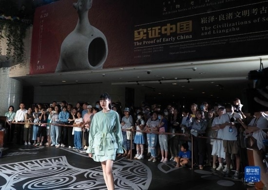 8月25日晚,模特在上博“研色·良渚之夜”綜合藝術秀上展示時裝。新華社記者 任瓏 攝