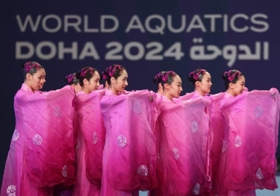 全部比賽結(jié)束后,作為花游賽事傳統(tǒng),世界泳聯(lián)還組織各隊(duì)進(jìn)行一次不計(jì)分的“表演秀”。各隊(duì)編排出有民族特色、地域風(fēng)情的動(dòng)作。中國(guó)隊(duì)對(duì)這個(gè)無關(guān)金牌的“表演秀”格外重視,這是一次在裁判面前加深印象的難得機(jī)會(huì)。姑娘們?cè)谙滤硌萸?,身著絲綢漢服,在中國(guó)風(fēng)配樂下,秀了一段傳統(tǒng)舞蹈。