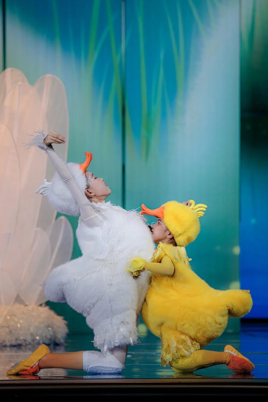 當(dāng)你提“鵝鵝鵝”,自然要期待“曲項(xiàng)向天歌”。駱賓王、唐詩(shī)宋詞、中華文化....看到節(jié)目單上的題目《鵝鵝鵝》,大概很多觀眾都以為是要詠詩(shī)。當(dāng)大幕開啟,柴可夫斯基的《天鵝湖》奏起,氣氛瞬間變得端莊典雅了,可接下來出場(chǎng)的是一群圓滾滾、扭著屁股的小小鵝,這波反差萌,讓網(wǎng)友直呼“創(chuàng)意絕了”。