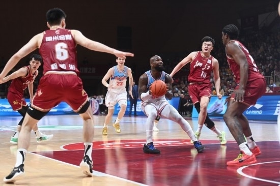 5月9日,新疆隊球員瓊斯(右三)在比賽中進(jìn)攻。新華社記者 黃宗治 攝