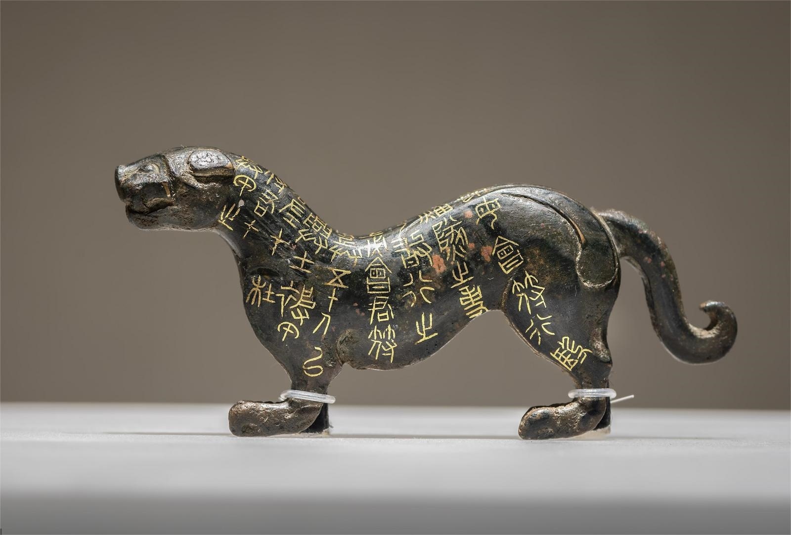 2300年前的戰(zhàn)國(guó)錯(cuò)金杜虎符,讓人穿越歷史,感受戰(zhàn)國(guó)時(shí)期沙場(chǎng)秋點(diǎn)兵的磅礴氣勢(shì)。陜西歷史博物館藏的錯(cuò)金杜虎符是一只霸氣虎,作行走狀,昂首,尾巴蜷曲?;⒎峡讨骸氨字S以诰?,左在杜。凡興士被甲,用兵五十人以上,必會(huì)君符,乃敢行之……”共9行40字,寫(xiě)明了虎符的用法和調(diào)兵范圍。使用的時(shí)候,虎符必須左右兩半嚴(yán)絲合縫地對(duì)合在一起才能起效,這也是“符合”一詞的來(lái)歷。