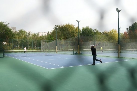 10月16日,在北京回龍觀體育文化公園的網球場,幾位愛好者在打網球。新華社記者 鞠煥宗 攝