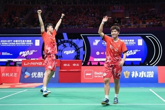 2024李寧·中國羽毛球大師賽24日決出各單項(xiàng)冠軍,國羽組合馮彥哲/黃東萍和劉圣書/譚寧分別奪得混雙、女雙冠軍。