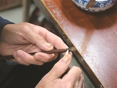 “無(wú)論是制作哪一類(lèi)品種的宣筆,要能實(shí)現(xiàn)‘尖、齊、圓、健’均屬不易,需經(jīng)歷選料、水盆、制桿、裝套等多道工序、100多個(gè)環(huán)節(jié)?!币灾茥U為例,佘征軍介紹,工人需要先將筆桿磨平,再用工具在筆桿上挖出裝筆頭的洞,這套工藝沒(méi)有特定的參數(shù)可參考,全憑工人的手上感覺(jué)?!皩W(xué)徒入行,一般3到5年才能完整學(xué)會(huì)宣筆制造流程;要想做出一支優(yōu)秀的宣筆,至少10到12年的學(xué)習(xí)實(shí)踐;而要想學(xué)‘精’,需要一輩子的時(shí)間。”佘征軍說(shuō)。