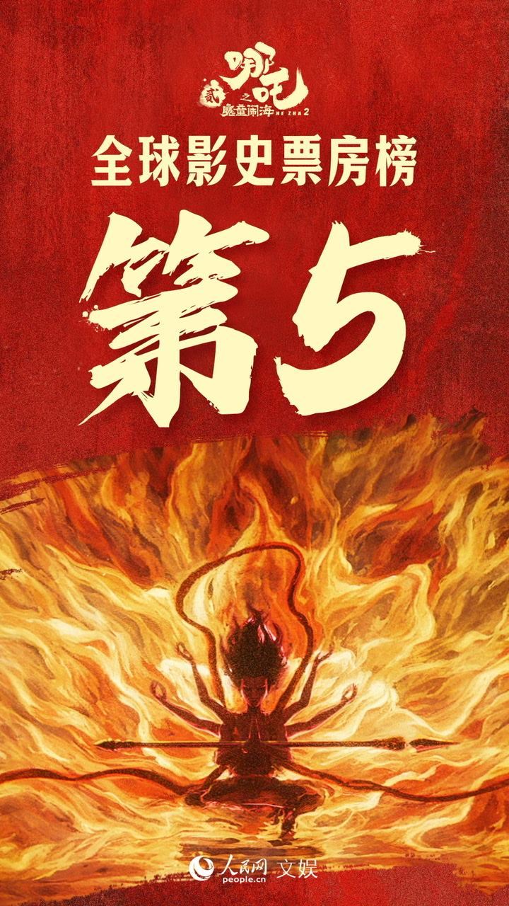 自上映以來,《哪吒之魔童鬧海》已連續(xù)創(chuàng)造多項(xiàng)紀(jì)錄,先后超越《獅子王》《侏羅紀(jì)世界》《頭腦特工隊2》《蜘蛛俠:英雄無歸》《復(fù)仇者聯(lián)盟3 :無限戰(zhàn)爭》票房成績,在全球影史票房榜上的排名不斷躍升。