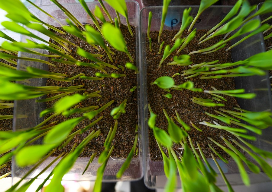 為了保障種子出芽率,土默特左旗相關(guān)部門要求農(nóng)資經(jīng)銷商將所銷售種子提前培育,在保障出芽率的基礎(chǔ)上切實讓農(nóng)民能夠買到放心種子。圖為提前培育出芽的種苗。(攝影:楊鑫)