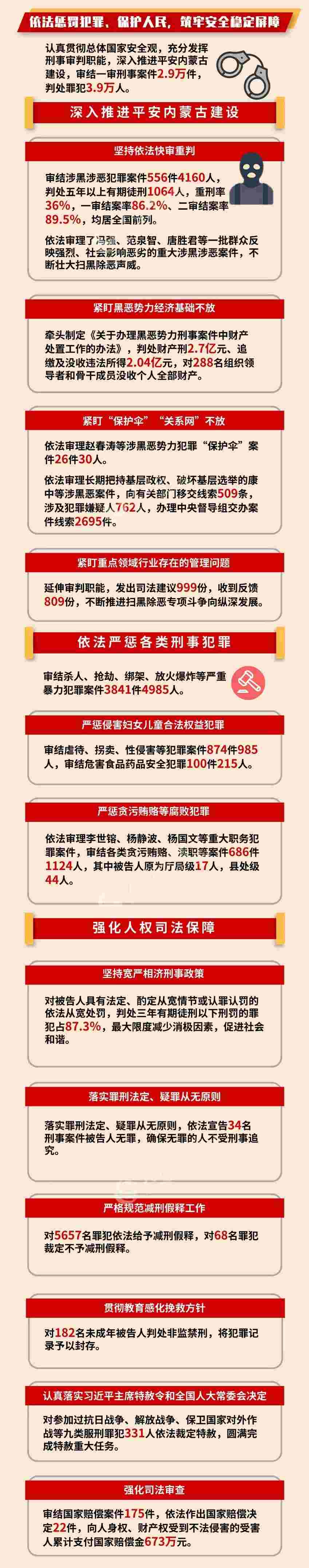 會上,內(nèi)蒙古自治區(qū)高級人民法院院長楊宗仁作《內(nèi)蒙古自治區(qū)高級人民法院工作報告》,內(nèi)蒙古自治區(qū)人民檢察院檢察長李琪林作《內(nèi)蒙古自治區(qū)人民檢察院工作報告》?!皟稍骸惫ぷ鲌蟾娑加心男┛袋c?今年兩會,小編繼續(xù)帶您看圖說兩會。