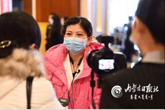 人大代表接受內(nèi)蒙古日報社記者采訪。